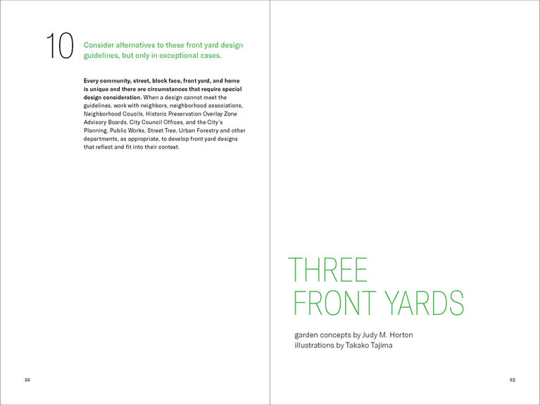 We have some ideas, and offer 10 considerations to think about if you intend to re-landscape your front yard. Scroll through a slide show of the book, below, or pick up a FREE hardcopy, (on paper!) edition of the book at